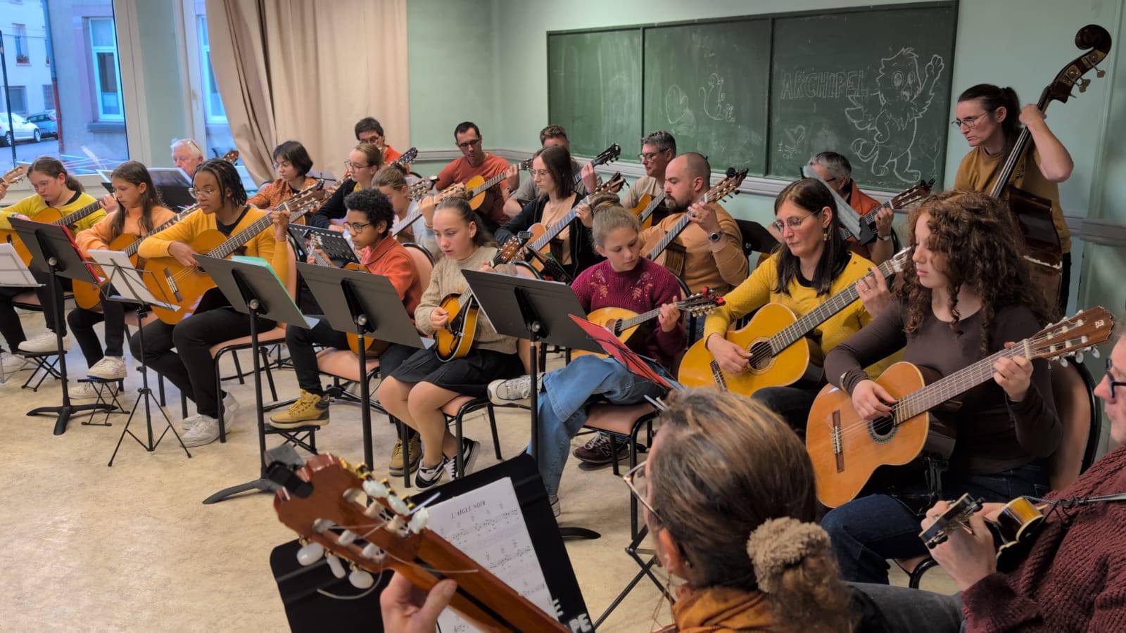 Ensemble Apromuse : orchestre qui répète les jeudis à 20h15 au 2 place Charles Thumann à Senones sous la direction d’Aline Perrin.