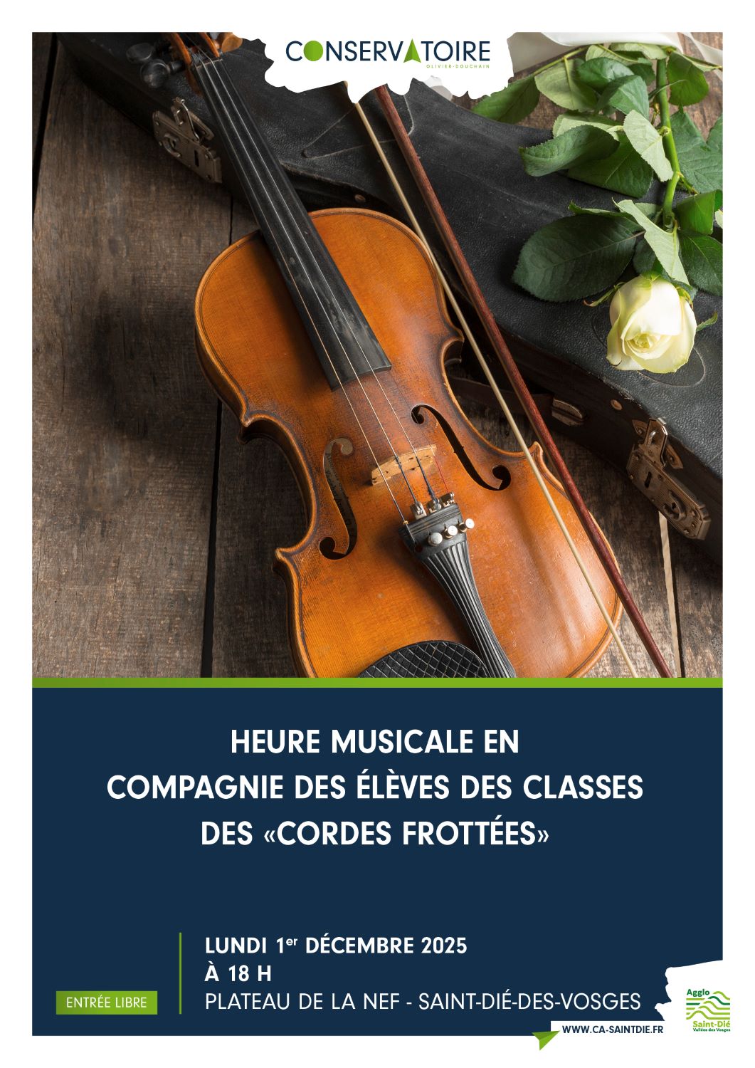 Reprise des cours à partir du 8 septembre. N’hésitez pas à vous renseigner, il est encore possible de s’inscrire ! Renseignements au 03 29 56 31 96 ou sur conservatoire@ca-saintdie.fr