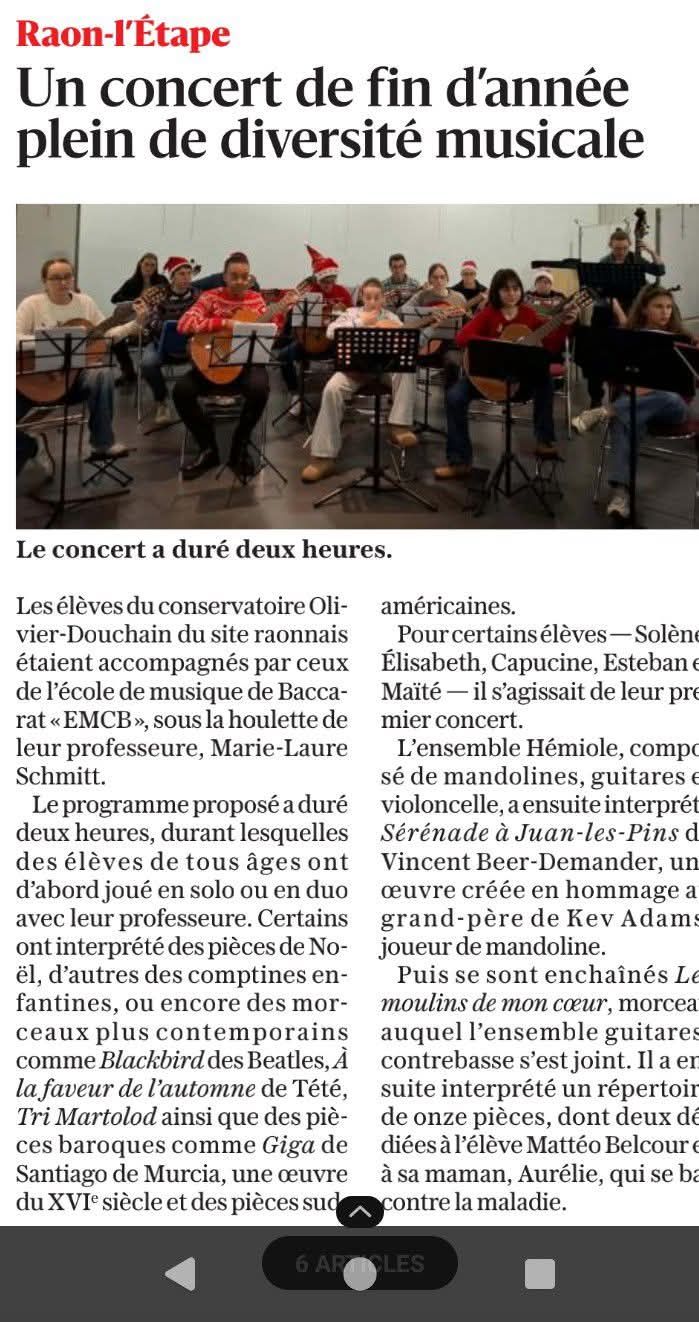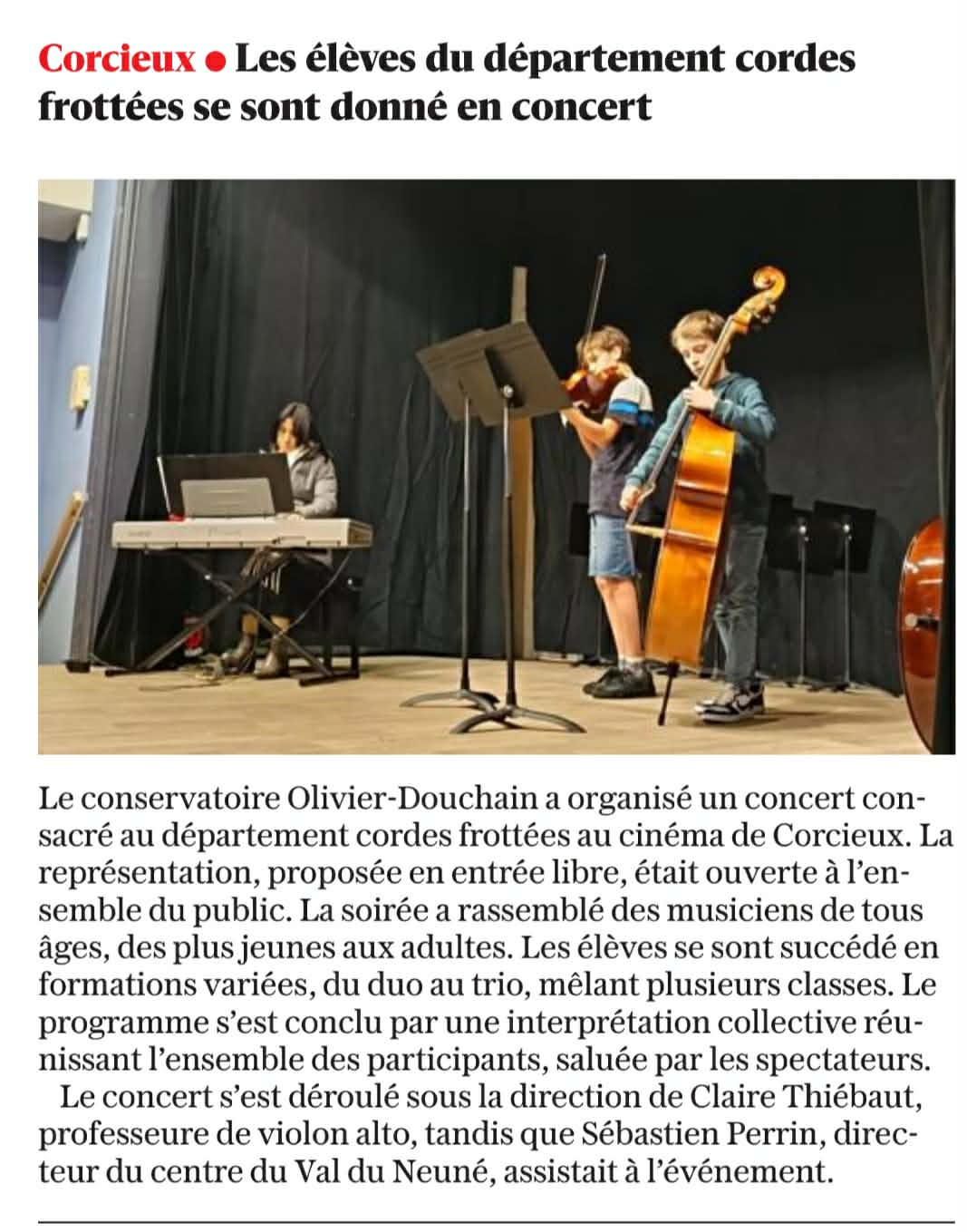 Article du 15-12-2024 : Ban-de-Laveline, les élèves du conservatoire Olivier Douchain se frottent à la scène